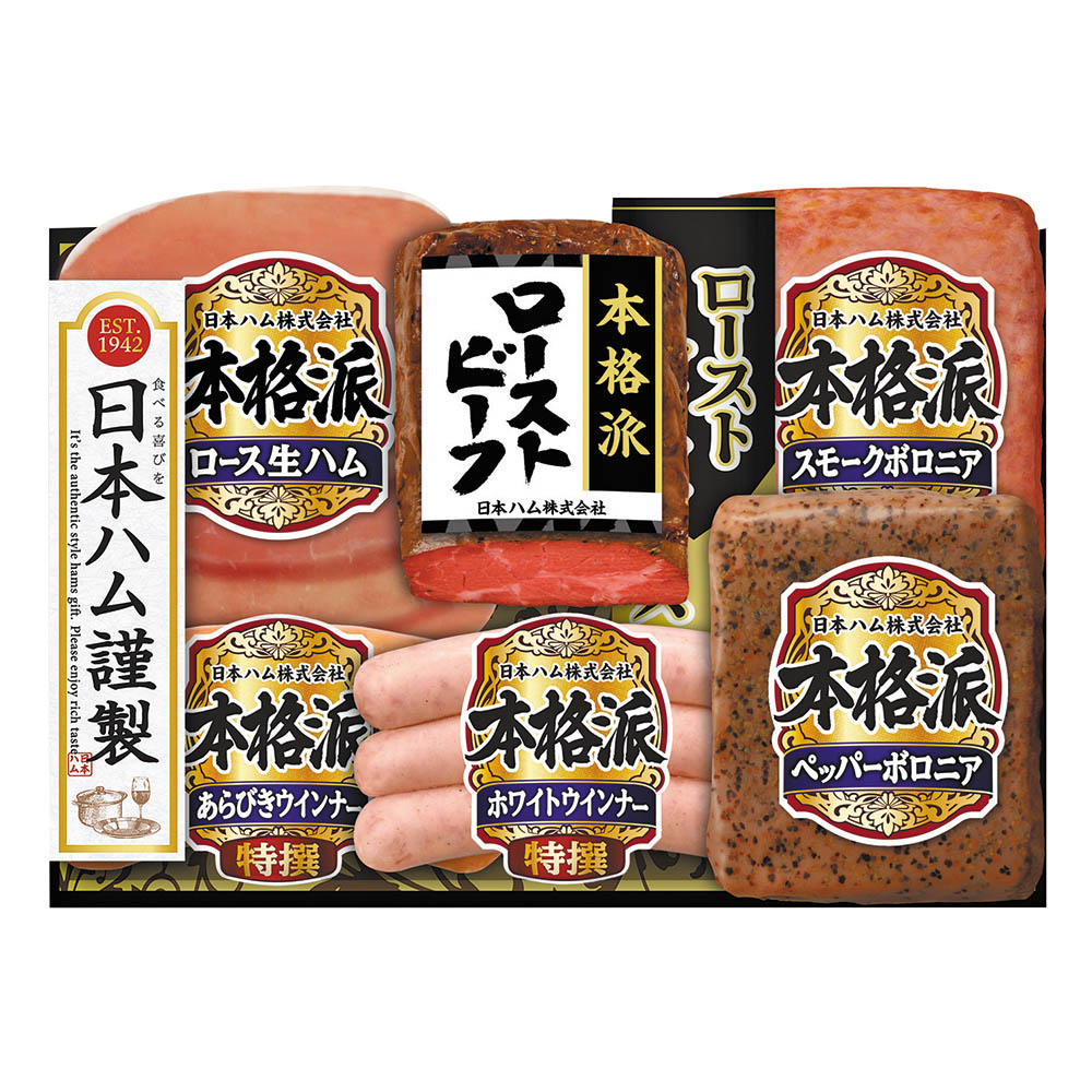 ローストビーフ 140g、ローストビーフソース 40g、ロース生ハム 27g、スモークボロニア・ペッパーボロニア 各105g、特撰あらびきウインナー・特撰ホワイトウインナー 各66g