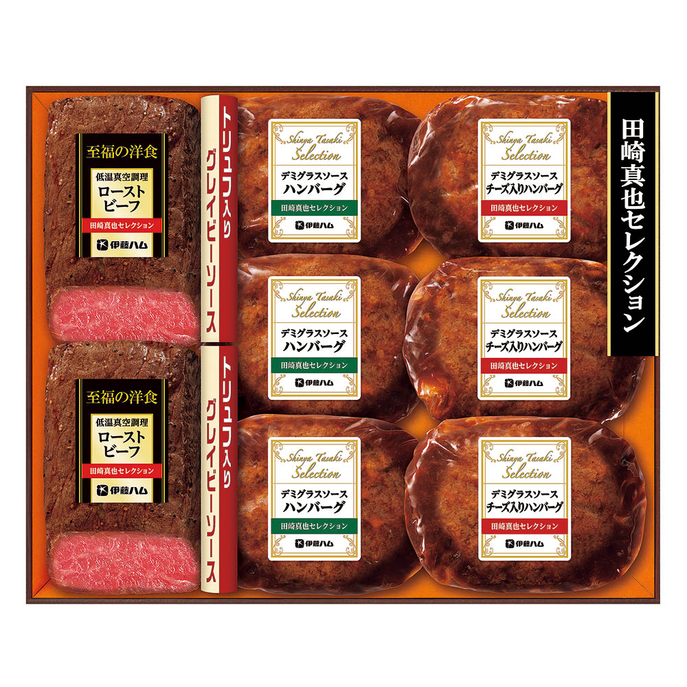 低温真空調理ローストビーフ(もも) 200g×2、トリュフ入りグレイビーソース 30g×2、デミグラスソースハンバーグ 120g×3、デミグラスソースチーズ入りハンバーグ 120g×3