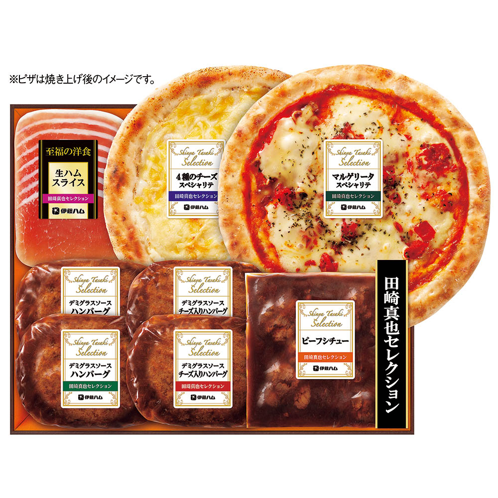 ピザマルゲリータスペシャリテ 270g、ピザ4種のチーズスペシャリテ 260g、デミグラスソースハンバーグ 120g×2、デミグラスソースチーズ入りハンバーグ 120g×2、ビーフシチュー 180g、生ハムスライス 45g