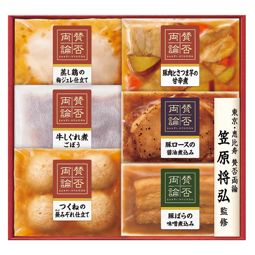 牛しぐれ煮ごぼう 55g、豚肉とさつま芋の甘辛煮・蒸し鶏の梅ジュレ仕立て 各150g、豚ロースの醤油煮込み・豚ばらの味噌煮込み 各70g、つくねの蕪みぞれ仕立て 180g