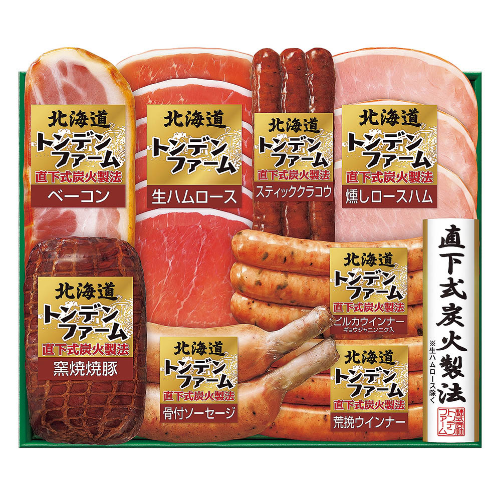 窯焼焼豚 200g、荒挽ウインナー・ピルカウインナー 各90g、骨付ソーセージ 120g、スティッククラコウ(ソフトサラミソーセージ) 80g、ベーコン 50g、燻しロースハム(スライス) 60g、生ハムロース(スライス) 40g
