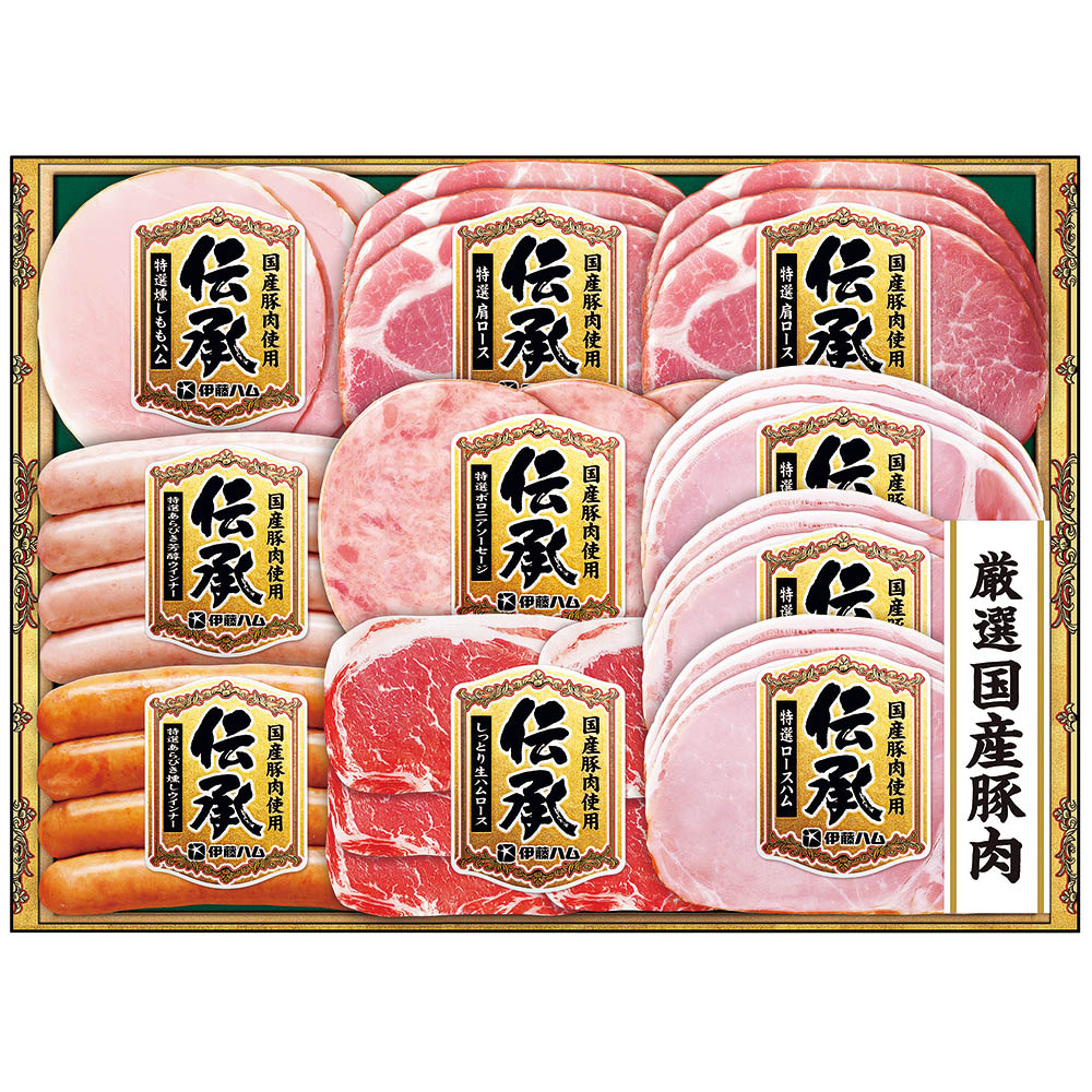 特選ロースハム 45g×3、特選肩ロース 66g×2、特選ボロニアソーセージ 51g、特選燻しももハム 48g、特選あらびき芳醇ウインナー・特選あらびき燻しウインナー 各85g、しっとり生ハムロース 34g