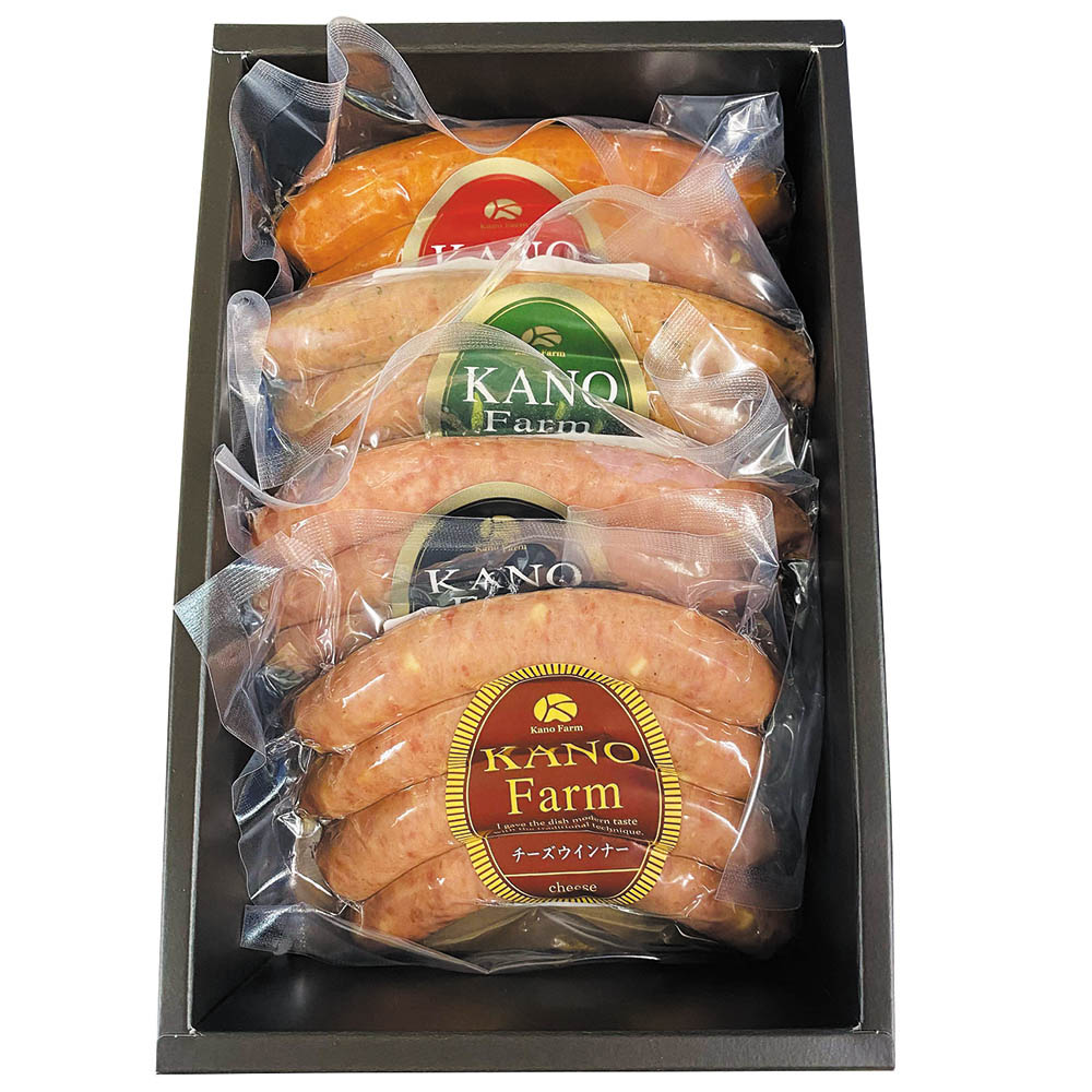 チーズウインナー 120g、あらびきポークウインナー 120g、チョリソーウインナー 120g、ハーブウインナー 120g