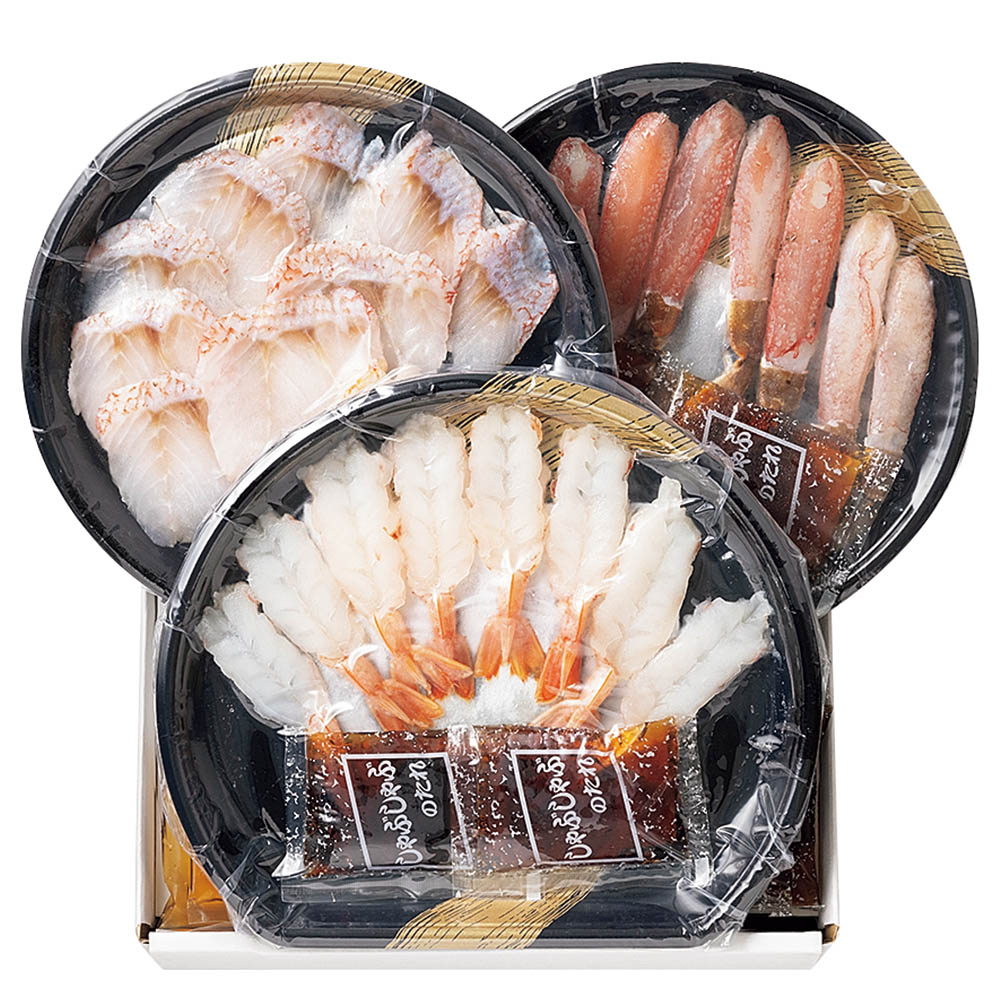 アラスカキチジ 約100g、ずわいがに×8、アルゼンチン赤えび×8、しゃぶしゃぶのたれ 150g(25g×6)、濃縮出汁 40g(20g×2)