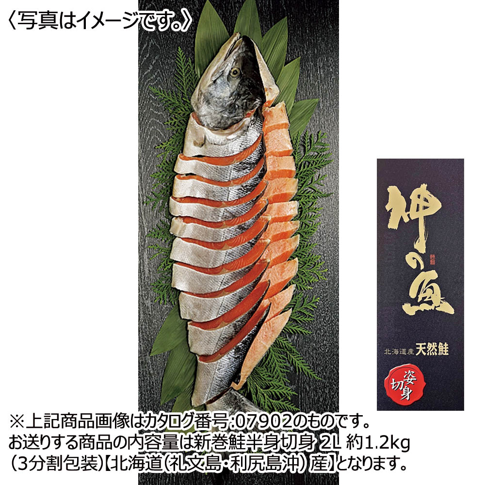 新巻鮭半身切身 2L 約1.2kg(3分割包装)【北海道(礼文島・利尻島沖)産】