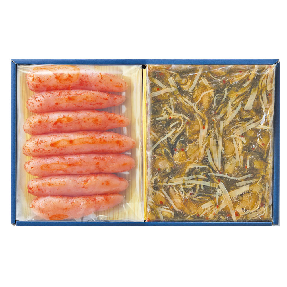 無着色辛子明太子 220g、数の子松前(黒醤油) 200g
