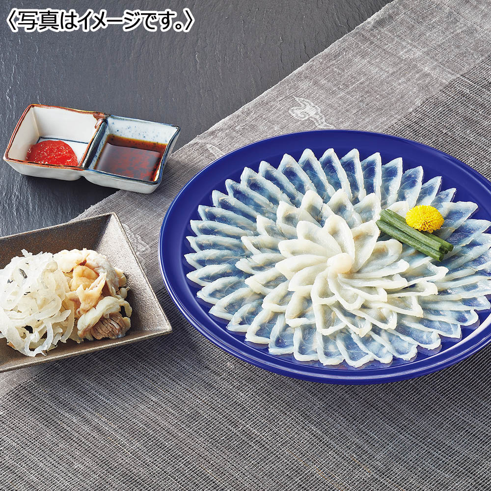 天然トラフグ刺身 100g(24cm高台皿)、天然トラフグ皮刺し 70g、ポン酢もみじおろし×4 【トラフグ/国産】