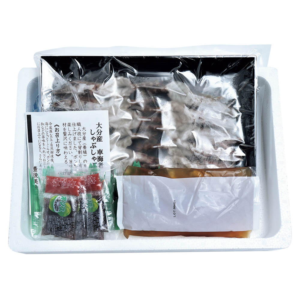 車海老しゃぶしゃぶ用×10、和風魚介だしスープ 250g、ポン酢・もみじおろし 各15g×4