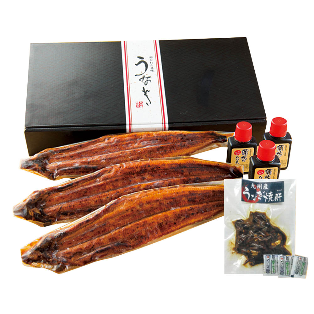 淡麗良蒲うなぎ蒲焼有腹真空 160g×3、うなぎ焼肝真空 50g、ボトルたれ・山椒×各3【鰻/九州産】