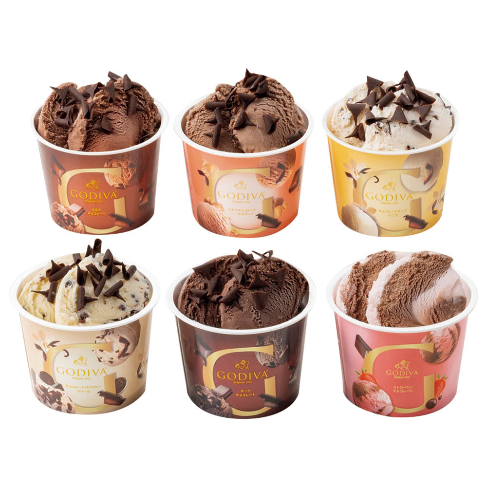 ミルクチョコレート、チョコレートチップ バニラ、ダークチョコレート、ストロベリーチョコレート、チョコレートクリスピー クリーム、ミルクチョコレート ヘーゼルナッツ