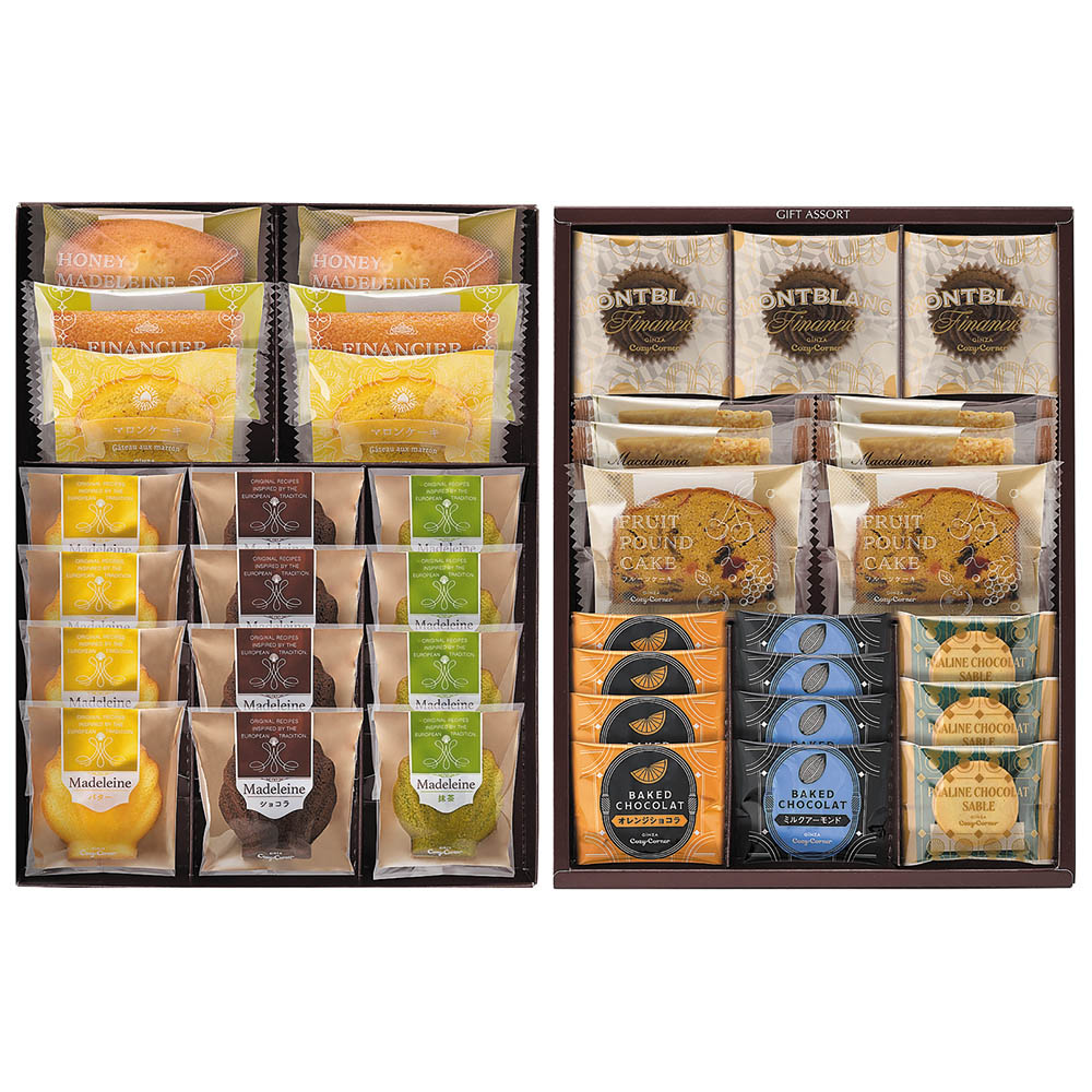 マドレーヌ×12、焼菓子・焼きショコラ×各8、プラリネショコラサブレ・モンブランフィナンシェ×各3、バトンマカダミア×4