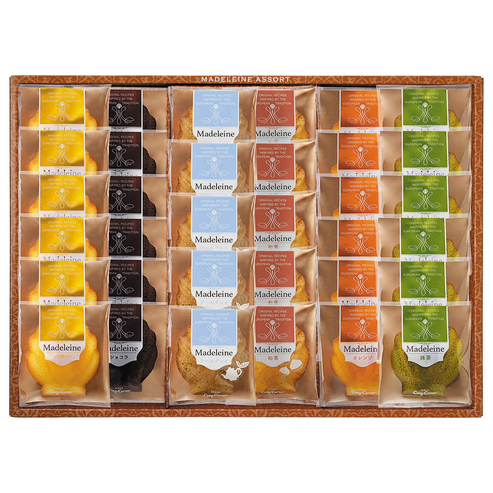 バターマドレーヌ・ショコラマドレーヌ・オレンジマドレーヌ・抹茶マドレーヌ×各6、和栗マドレーヌ・アールグレイマドレーヌ×各5