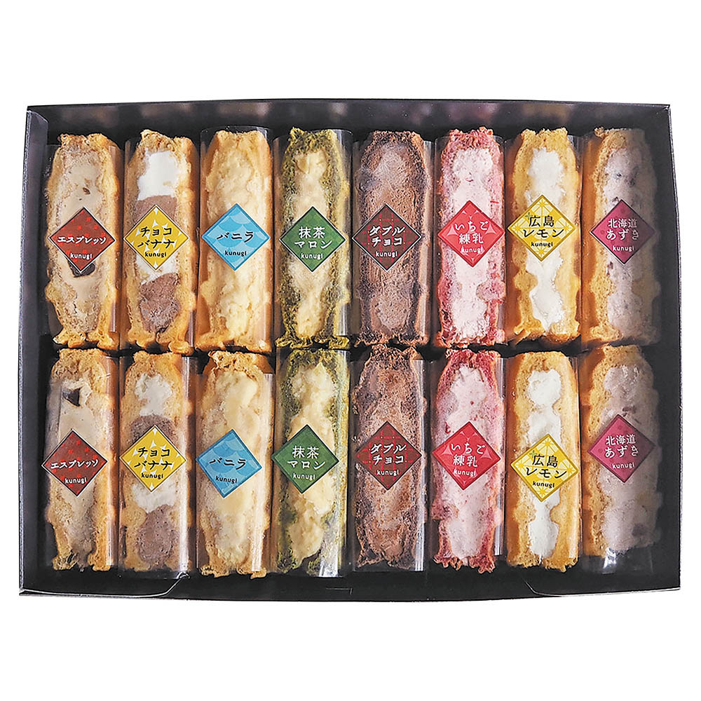 エスプレッソ・チョコバナナ・バニラ・抹茶マロン・ダブルチョコ・いちご練乳・広島レモン・北海道あずき×各2