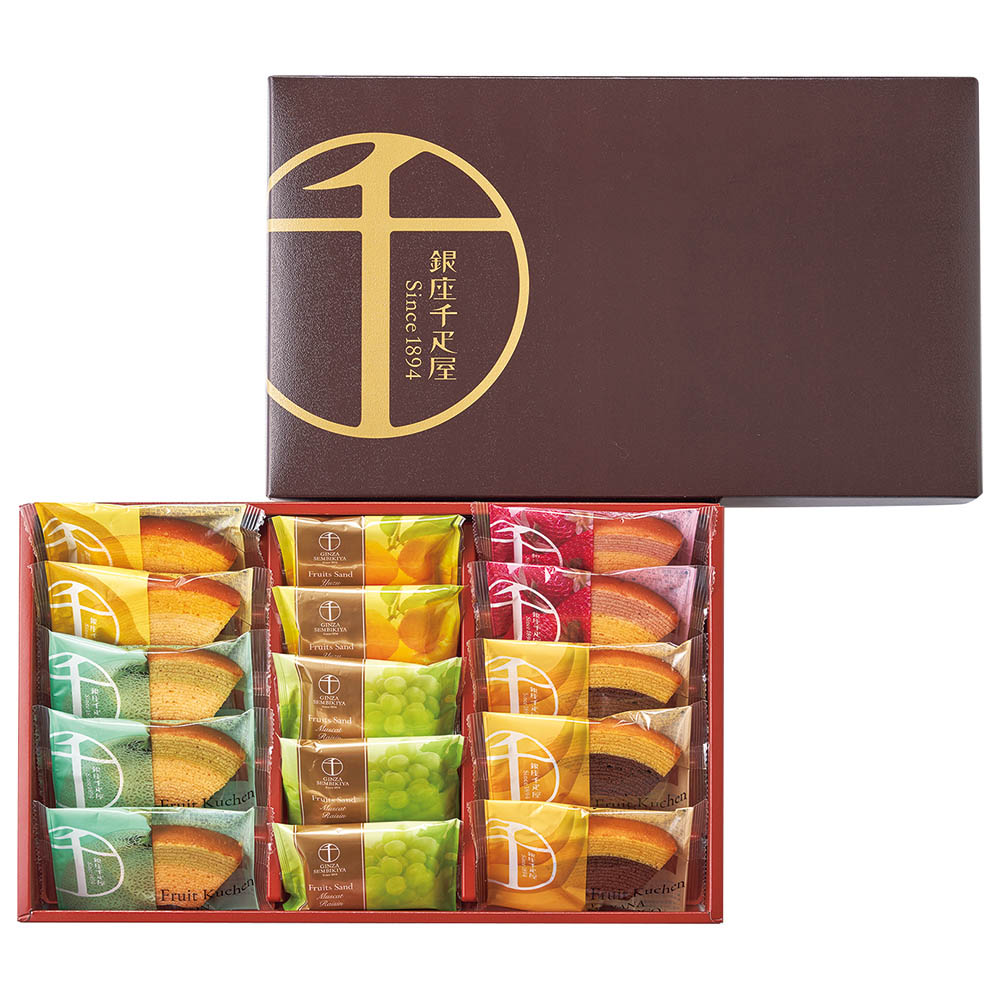 銀座フルーツクーヘン(イチゴ&ミルク・レモン&はちみつ×各2、メロン&ミルク・バナナ&チョコ×各3)、銀座フルーツサンド(柚子×2、マスカットレーズン×3)