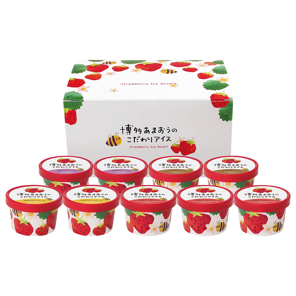 あまおうソース&バニラ 58ml×3、あまおう&ショコラ 76ml×2、あまおうクリームチーズ・あまおうシャーベット 各78ml×2 計9