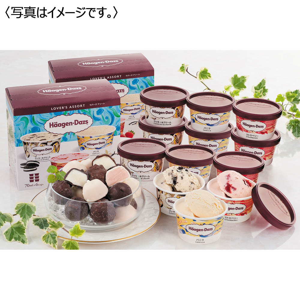 ハーゲンダッツラバーズアソート(バニラ・クッキー&クリーム・ストロベリー 各70ml×2)×2、ショコラアイスボール(バニラ・クランチ・ストロベリー 各12ml×6) 計18
