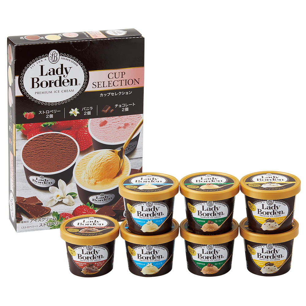 レディーボーデンミニカップ(バニラ・コーヒー・クッキー&クリーム 各120ml×2、チョコレートチップ 120ml)、レディーボーデンマルチカップセレクション 75ml×6