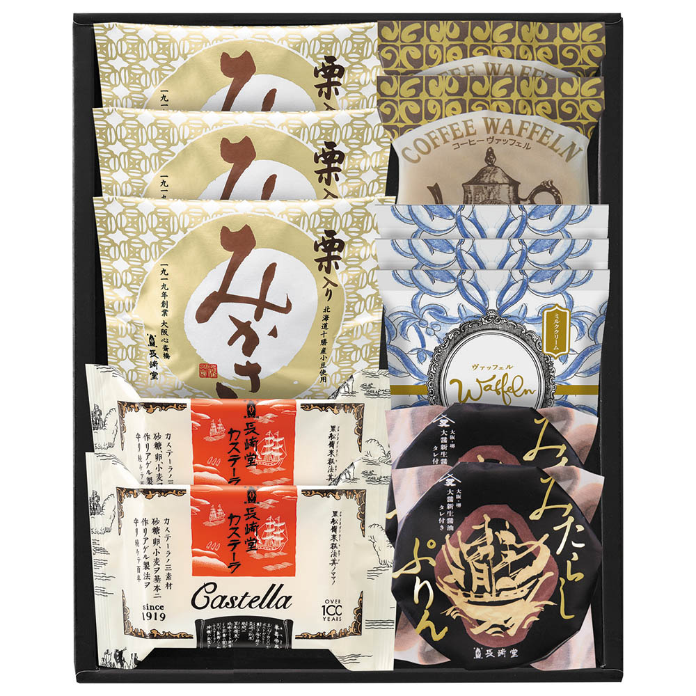 ひときれカステラ・珈琲ヴァッフェル・みたらしプリン×各2、栗みかさ・ヴァッフェル×各3