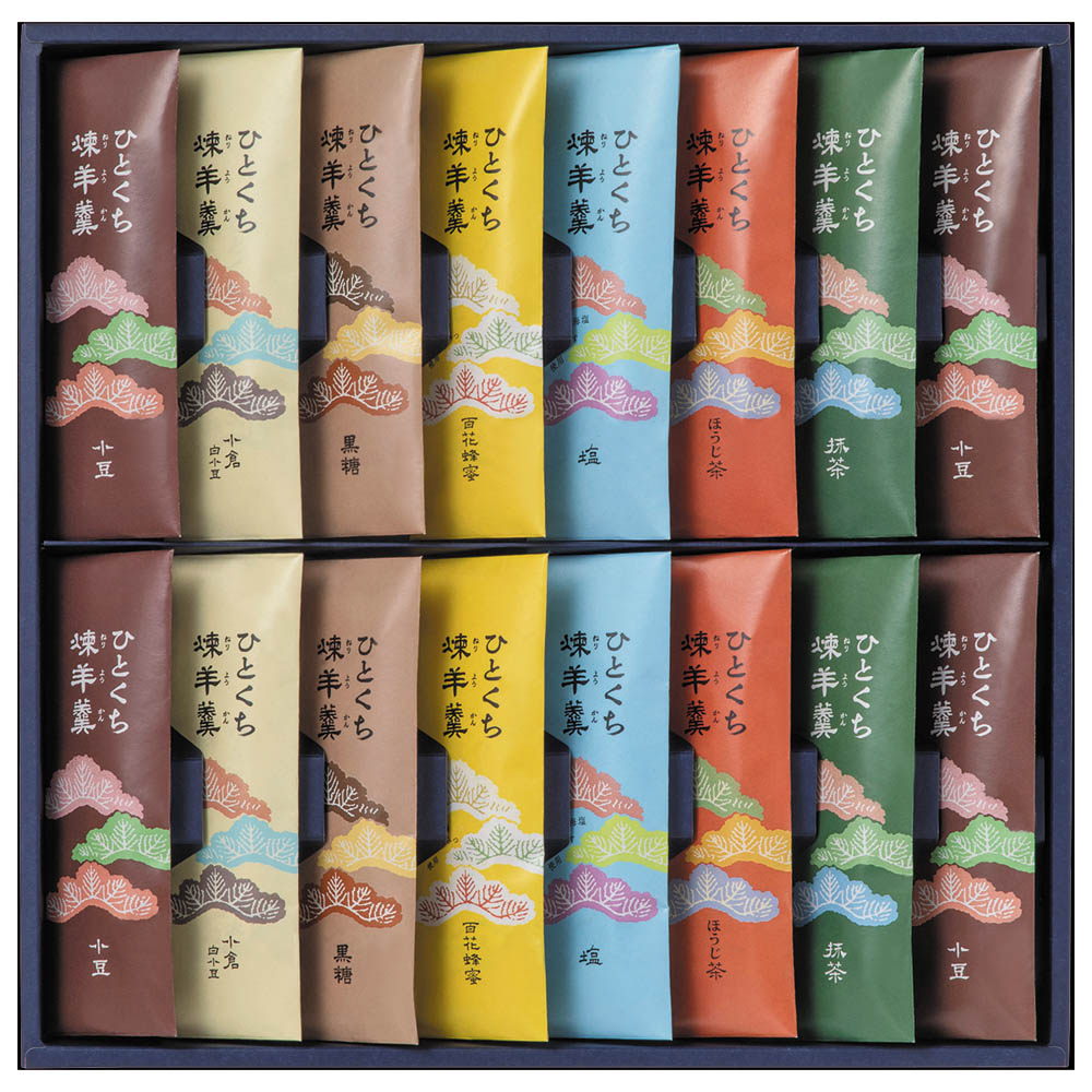 ひとくち煉羊羹(小豆×4、小倉白小豆・黒糖・百花蜂蜜・塩・ほうじ茶・抹茶×各2) 計16本