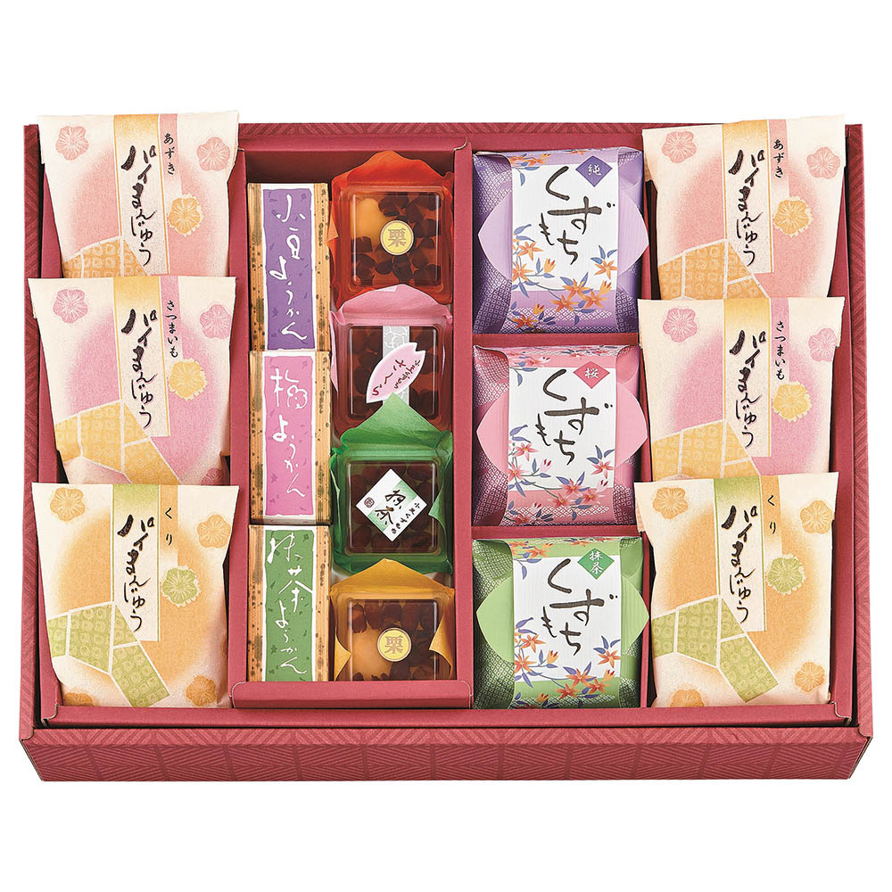 パイまんじゅう×6、ようかん・くずもち×各3、栗かのこ×2、小豆くずもち抹茶、小豆くずもちさくら