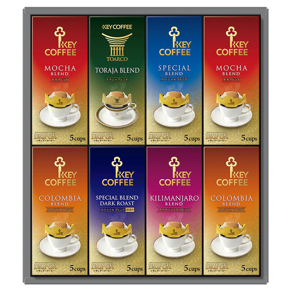 モカブレンド・コロンビアブレンド(各8g×5袋)×2、スペシャルブレンド 深煎り(7.5g×5袋)、トラジャブレンド・スペシャルブレンド・キリマンジャロブレンド(各8g×5袋)