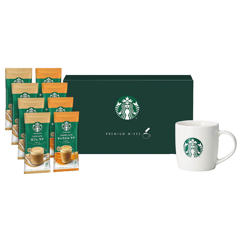 スターバックス(R) プレミアム ミックス(カフェ ラテ・キャラメル ラテ 各4)、スターバックス マグカップ