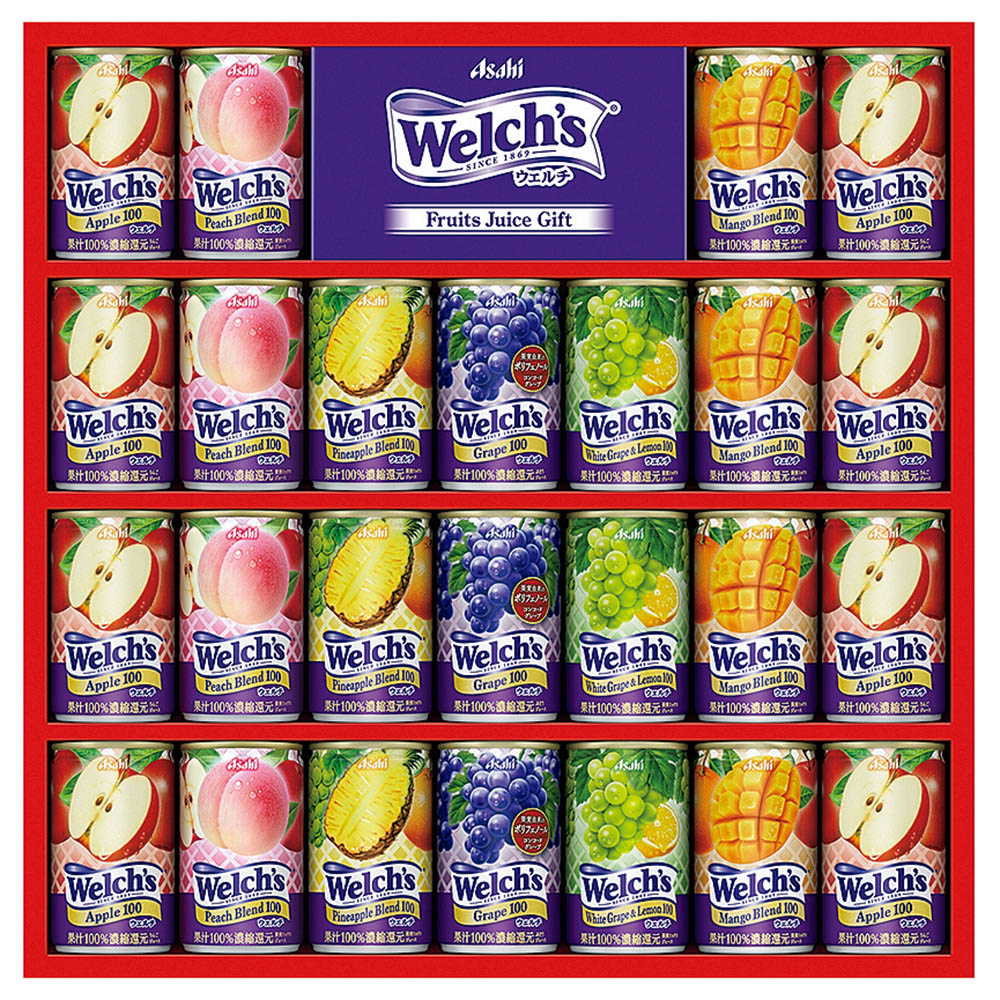 「Welch’s」(グレープ100・パインアップル100・グレープ&レモン100)各160g缶×3、「Welch’s」アップル100 160g缶×8、「Welch’s」(マンゴーブレンド100・ピーチブレンド100) 各160g缶×4