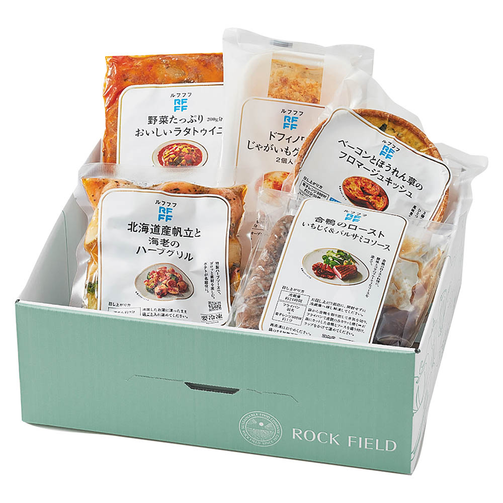 ドフィノワ じゃがいもグラタン(2個入り)、野菜たっぷり200g分使用 おいしいラタトゥイユ、ベーコンとほうれん草のフロマージュキッシュ、北海道産帆立と海老のハーブグリル、合鴨のロースト いちじく&バルサミコソース