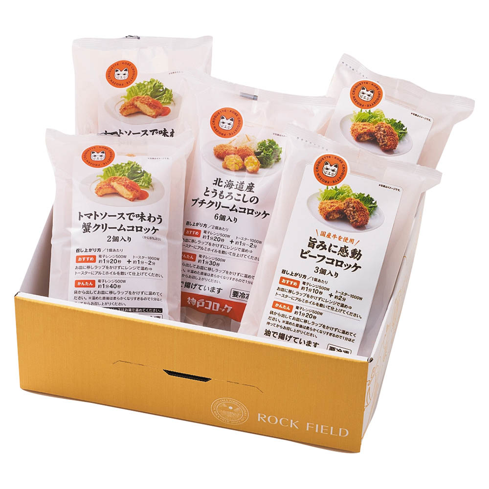 トマトソースで味わう 蟹クリームコロッケ(2個入り)・旨みに感動 ビーフコロッケ(3個入り)×各2、北海道産とうもろこしのプチクリームコロッケ(6個入り)