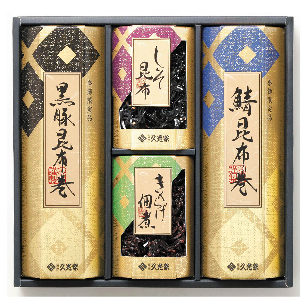 黒豚昆布巻、さば昆布巻、しそ昆布 70g、きくらげ佃煮 60g