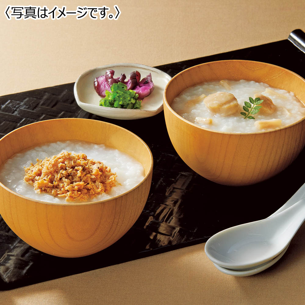 鮭粥(白粥 250g・鮭ほぐし 15g)×2、帆立粥 250g×2、鯛粥(白粥 250g・鯛ほぐし 15g)×2、だし粥 250g、のどぐろ粥(白粥 250g・のどぐろほぐし 15g) 計8点