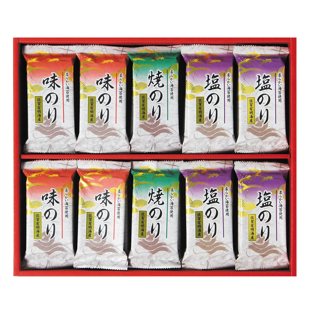 味のり・塩のり(各8切4枚×12)、焼のり(8切4枚×6)