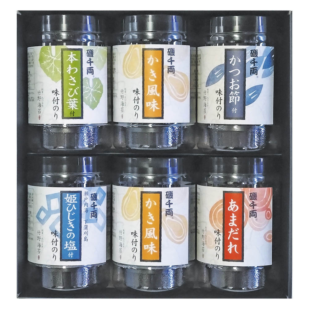 味付のり(かき風味 8切40枚×2、本わさび葉付・かつお節付・姫ひじきの塩付・あまだれ 各8切40枚)