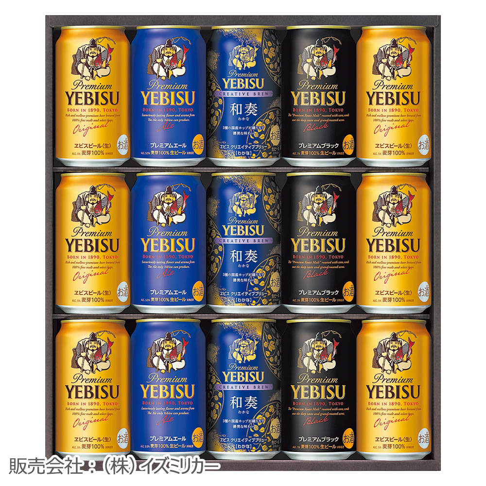 ヱビスビール缶 350ml×6、ヱビスクリエイティブブリュー和奏缶・プレミアムエール缶・プレミアムブラック缶 各350ml×3