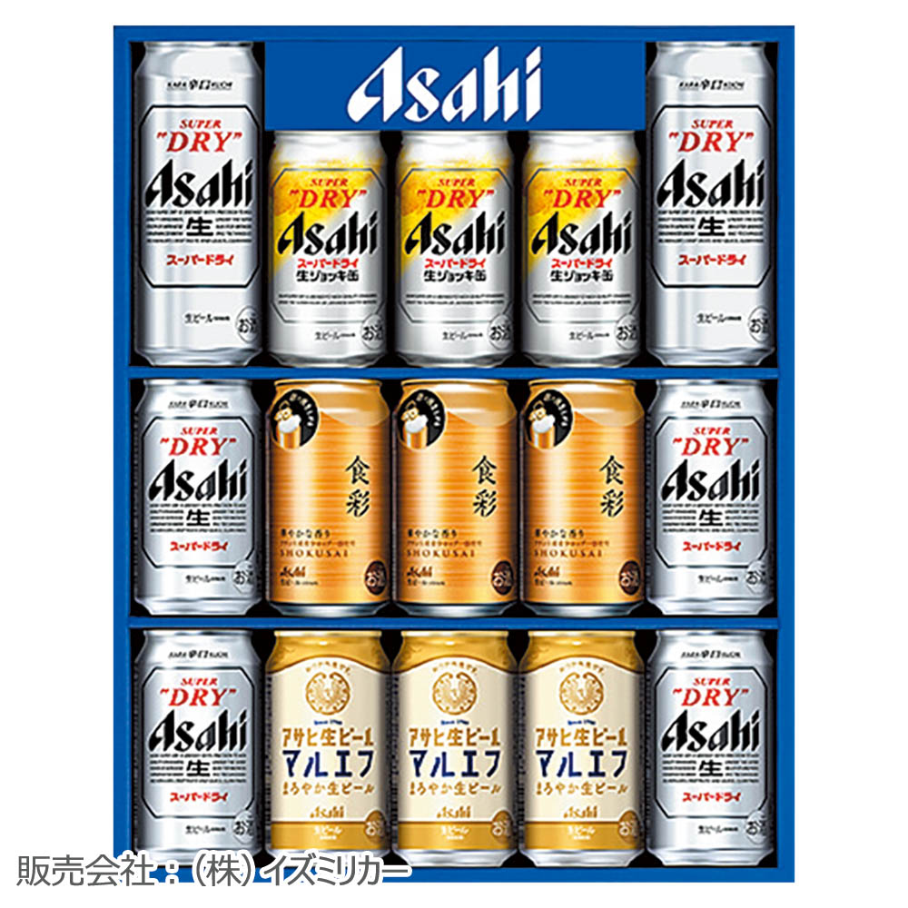 スーパードライ(350ml×4、500ml×2)、アサヒ生ビール 350ml×3、スーパードライ 生ジョッキ缶・アサヒ食彩 各340ml×3