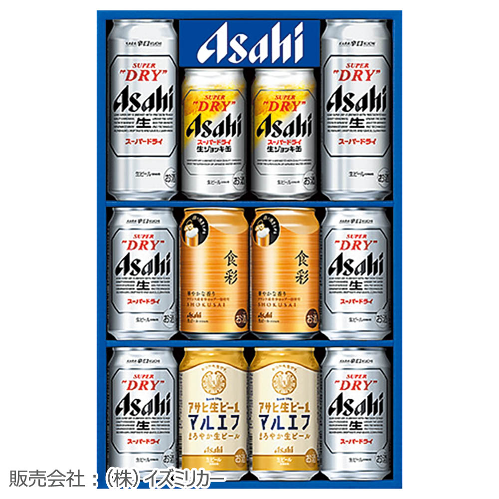 スーパードライ(350ml×4、500ml×2)、アサヒ生ビール 350ml×2、スーパードライ 生ジョッキ缶・アサヒ食彩 各340ml×2