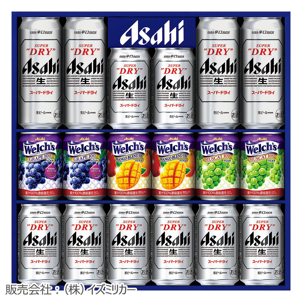 スーパードライ(350ml×8、500ml×4)、Welch’s(コンコードグレープ・マンゴーブレンド・マスカット 各280g×2)