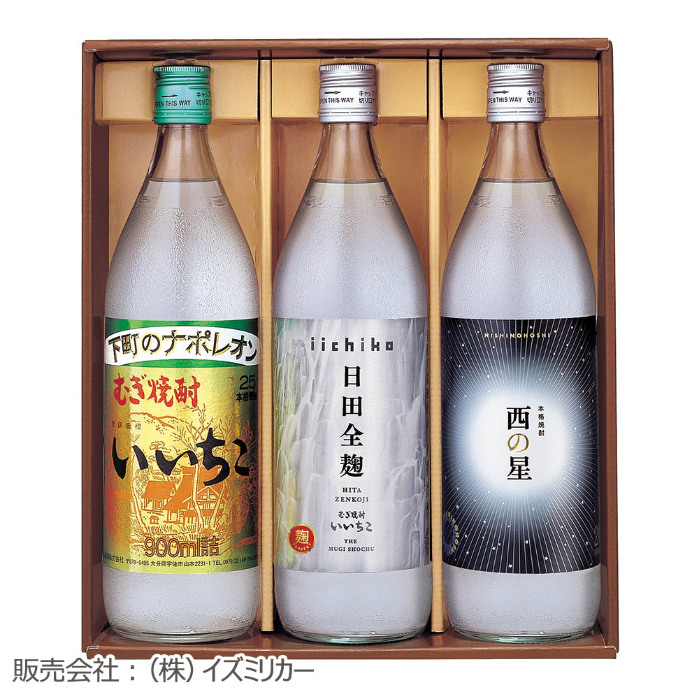 いいちこ 25度 900ml、いいちこ日田全麹 25度 900ml、西の星 20度 900ml