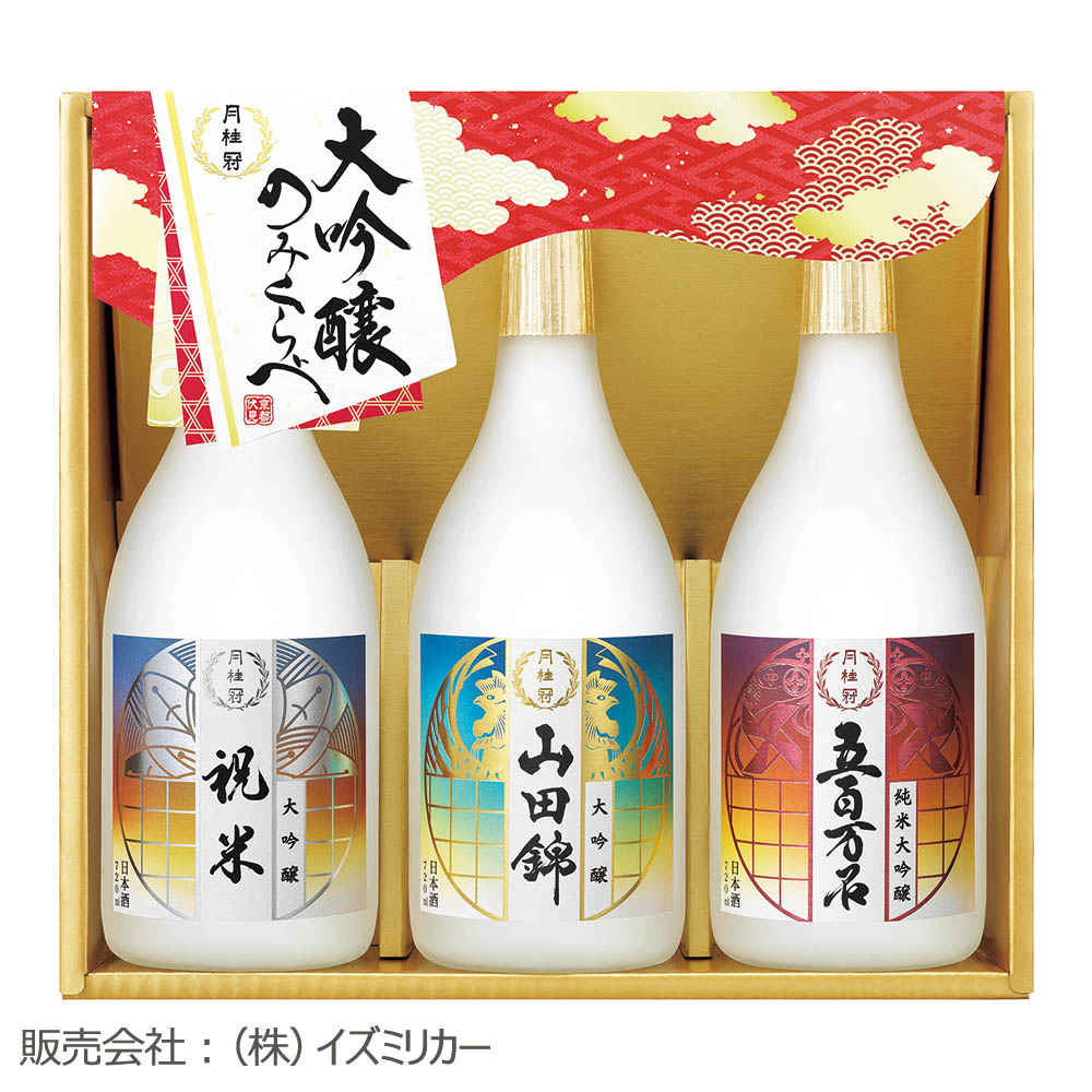祝米 大吟醸 720ml(やや辛口)、山田錦 大吟醸 720ml(やや辛口)、五百万石 純米大吟醸 720ml(やや辛口)