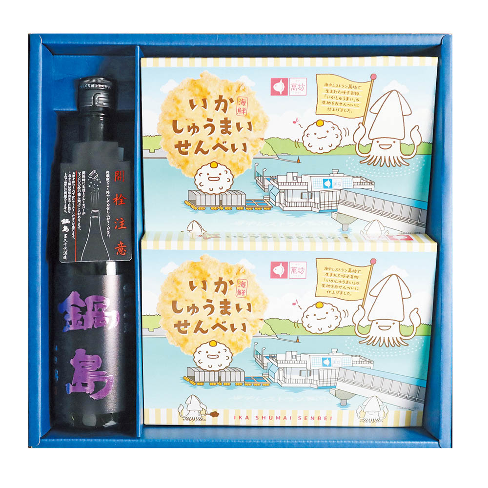 鍋島 純米吟醸紫ラベル 720ml、いかしゅうまいせんべい(海鮮) 2枚入×6袋×2