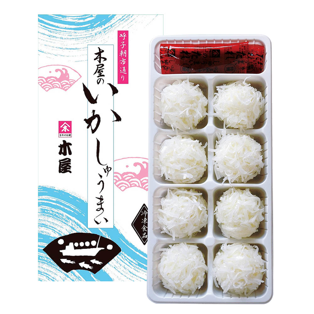 <木屋>いかしゅうまい8粒入、たれ付 <福さ屋>無着色辛子めんたい切子150g <林兼産業>霧島黒豚煮込みハンバーグ120g×3 <ふくみ屋>角煮卓袱まんじゅう210g(3個)