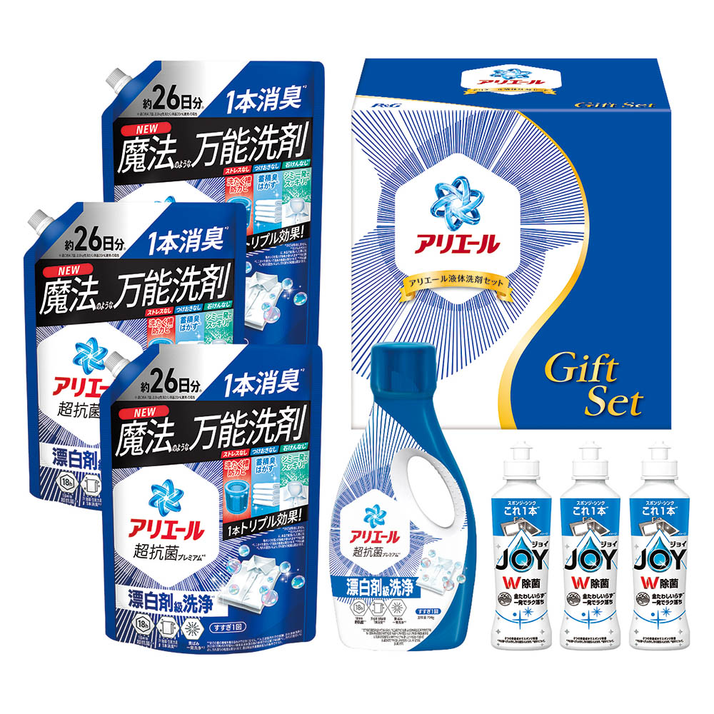 アリエールジェル 700g、詰替超特大 625g×3、除菌ジョイ 170ml×3