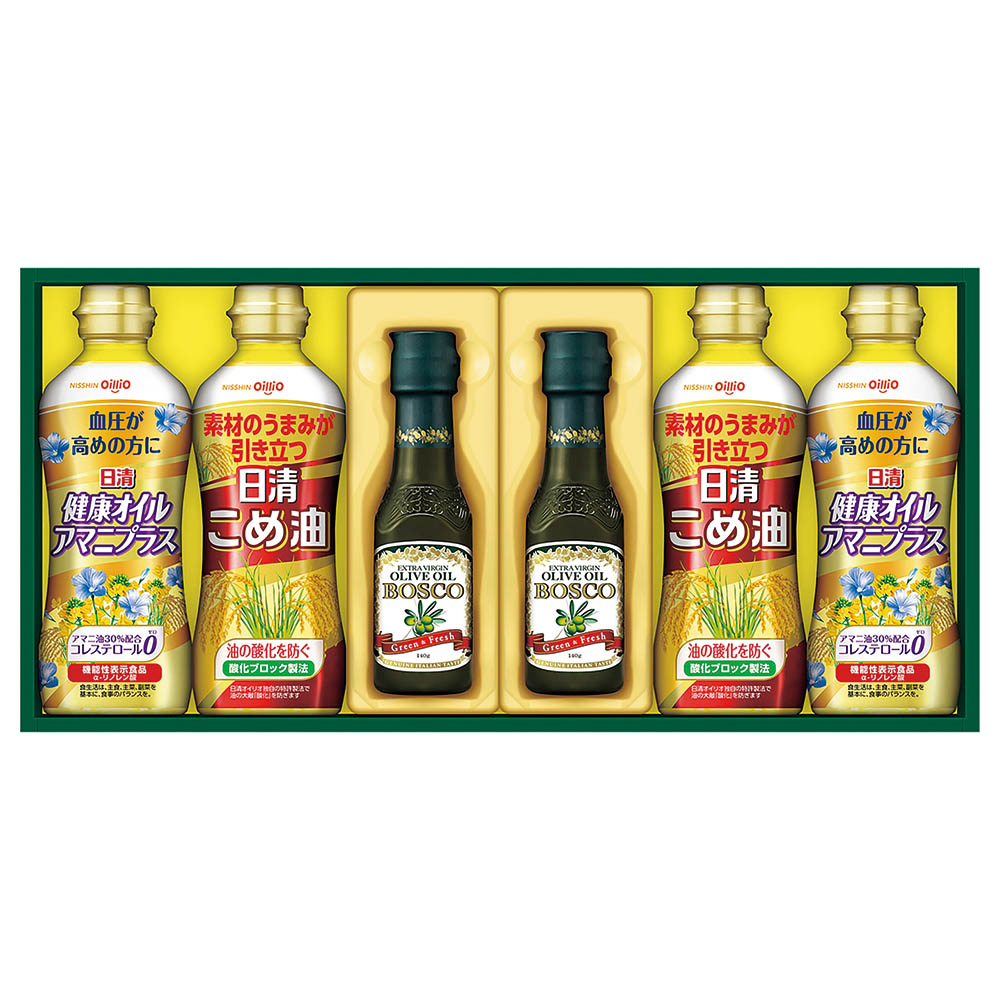 ボスコEXVオリーブオイル 140g×2、アマニ油プラス・こめ油 各350g×2
