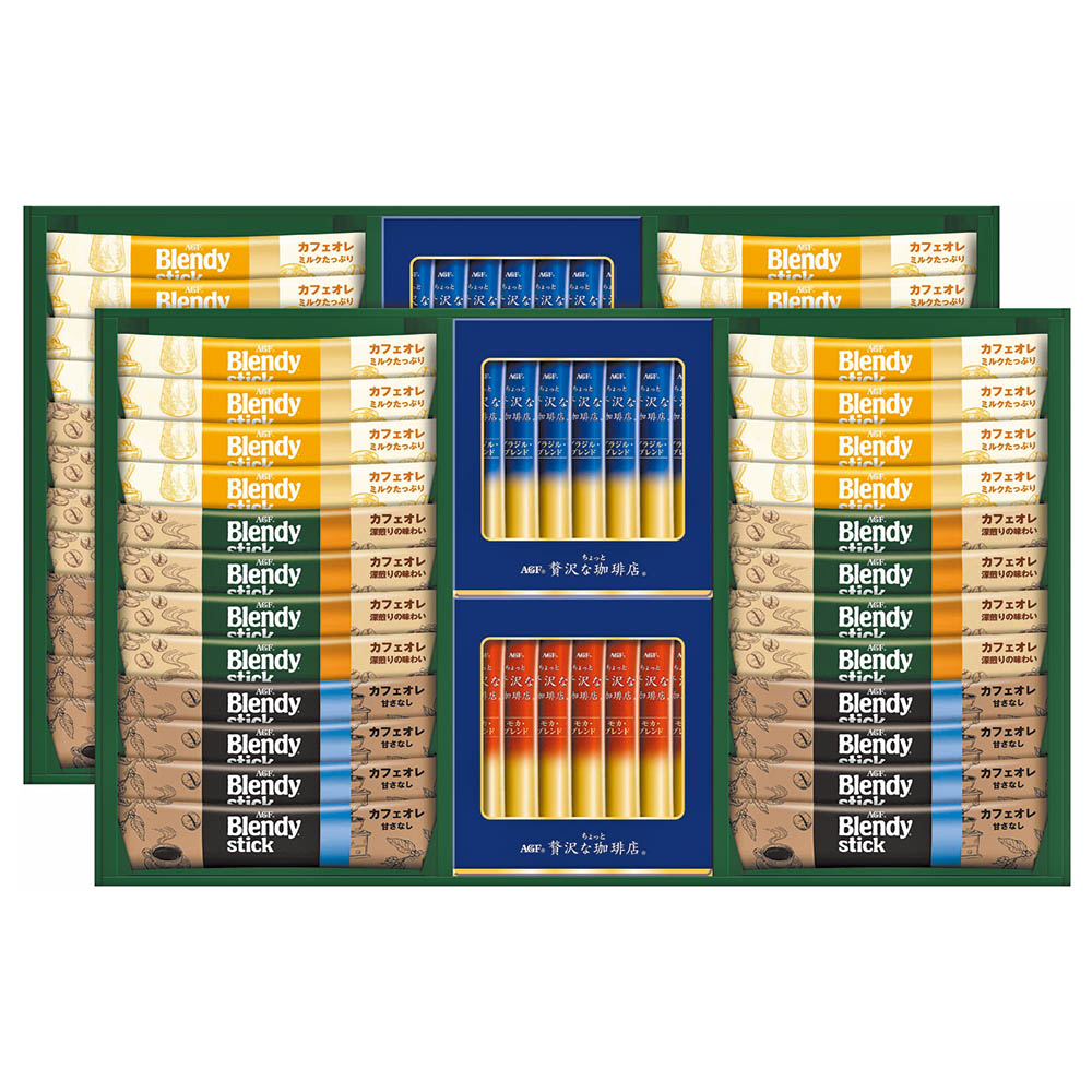 ブレンディ(R)スティック(カフェオレ・ミルクたっぷり・甘さなし×各16)、ちょっと贅沢な珈琲店(R)スティックブラック(ブラジル・モカ×各14)