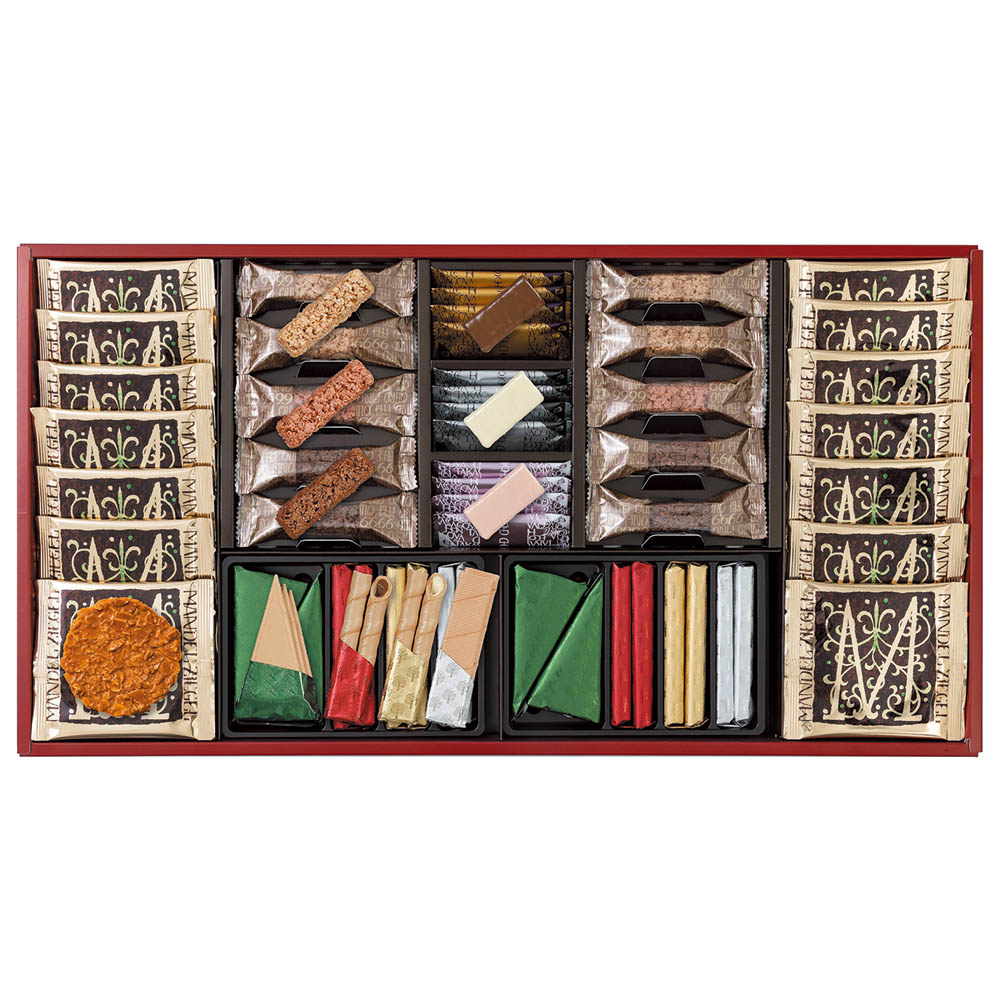 エコルセ×36、マンデルチーゲル×14、ショコラエコルセ(ミルクチョコ・ホワイトチョコ・ストロベリーチョコ×各4)、米粉クランチ(ミルクチョコ・ホワイトチョコ×各4、ラズベリーチョコ×2)