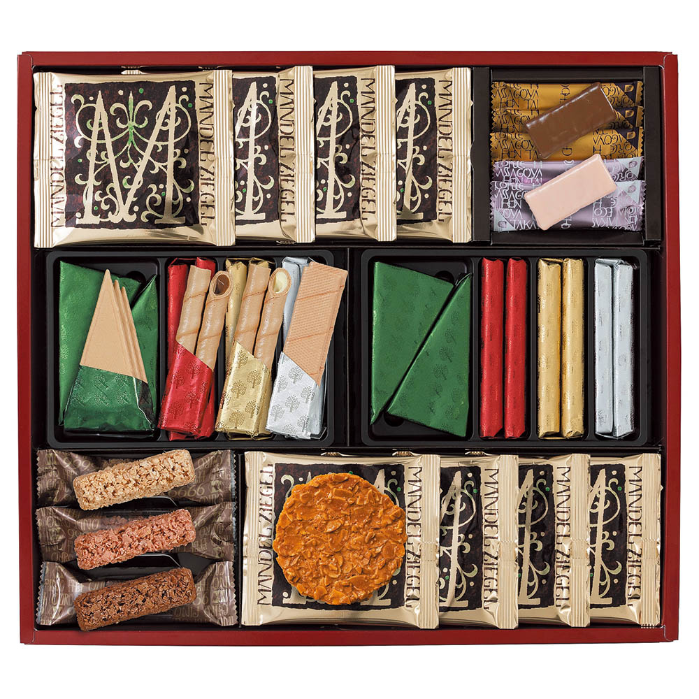 エコルセ×36、マンデルチーゲル×8、ショコラエコルセ(ミルクチョコ× 3、ストロベリーチョコ× 2)、米粉クランチ(ミルクチョコ・ホワイトチョコ・ラズベリーチョコ)