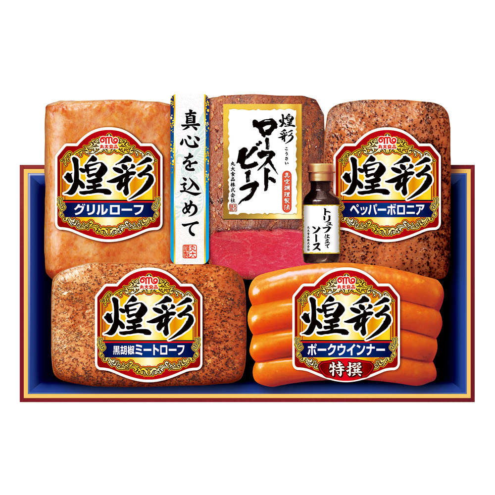 グリルローフ 110g、ローストビーフ(モモ) 180g、トリュフ仕立てソース 90ml、ペッパーボロニア 110g、黒胡椒ミートローフ 160g、特撰ポークウインナー(プレーン) 80g
