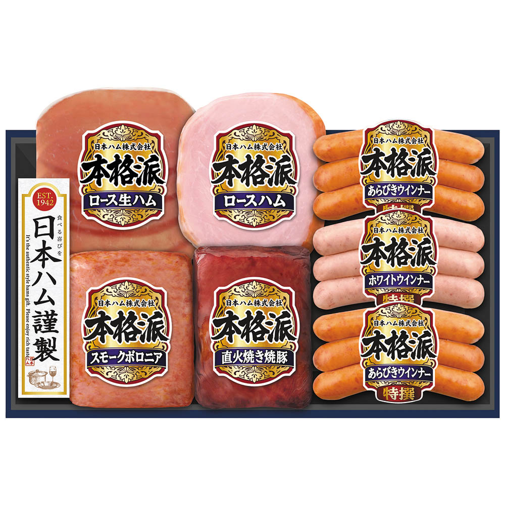 ロースハム 160g、スモークボロニア 105g、ロース生ハム 27g、直火焼き焼豚 152g、特撰あらびきウインナー 66g×2、特撰ホワイトウインナー 66g