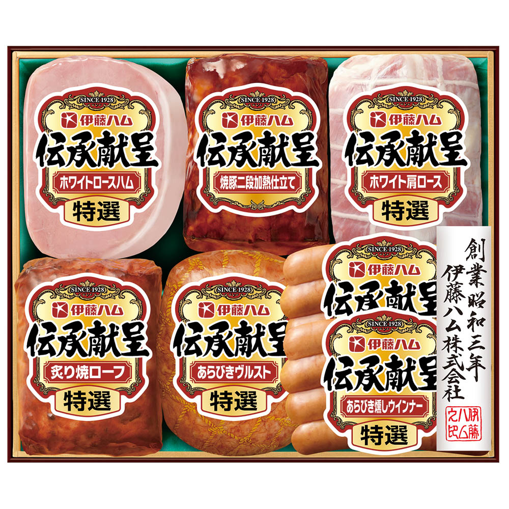 特選ホワイトロースハム・特選ホワイト肩ロース 各180g、焼豚二段加熱仕立て・特選炙り焼ローフ・特選あらびきヴルスト 各160g、特選あらびき燻しウインナー 80g×2