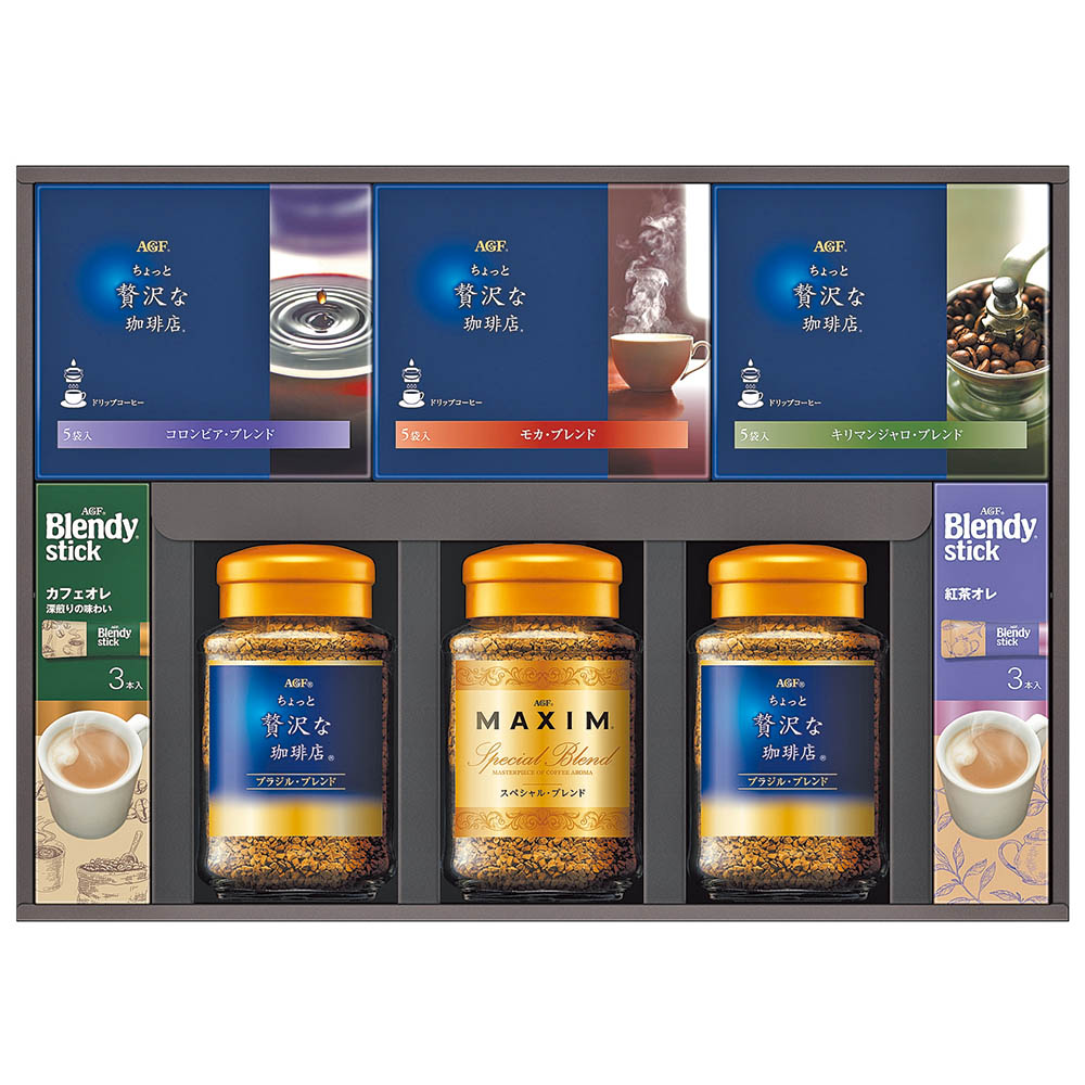 ちょっと贅沢な珈琲店(R)(ブラジル×2)、マキシム(R)、ちょっと贅沢な珈琲店(R)ドリップ(コロンビア、キリマンジャロ、モカ)、ブレンディ(R)スティック(カフェオレ、紅茶オレ)